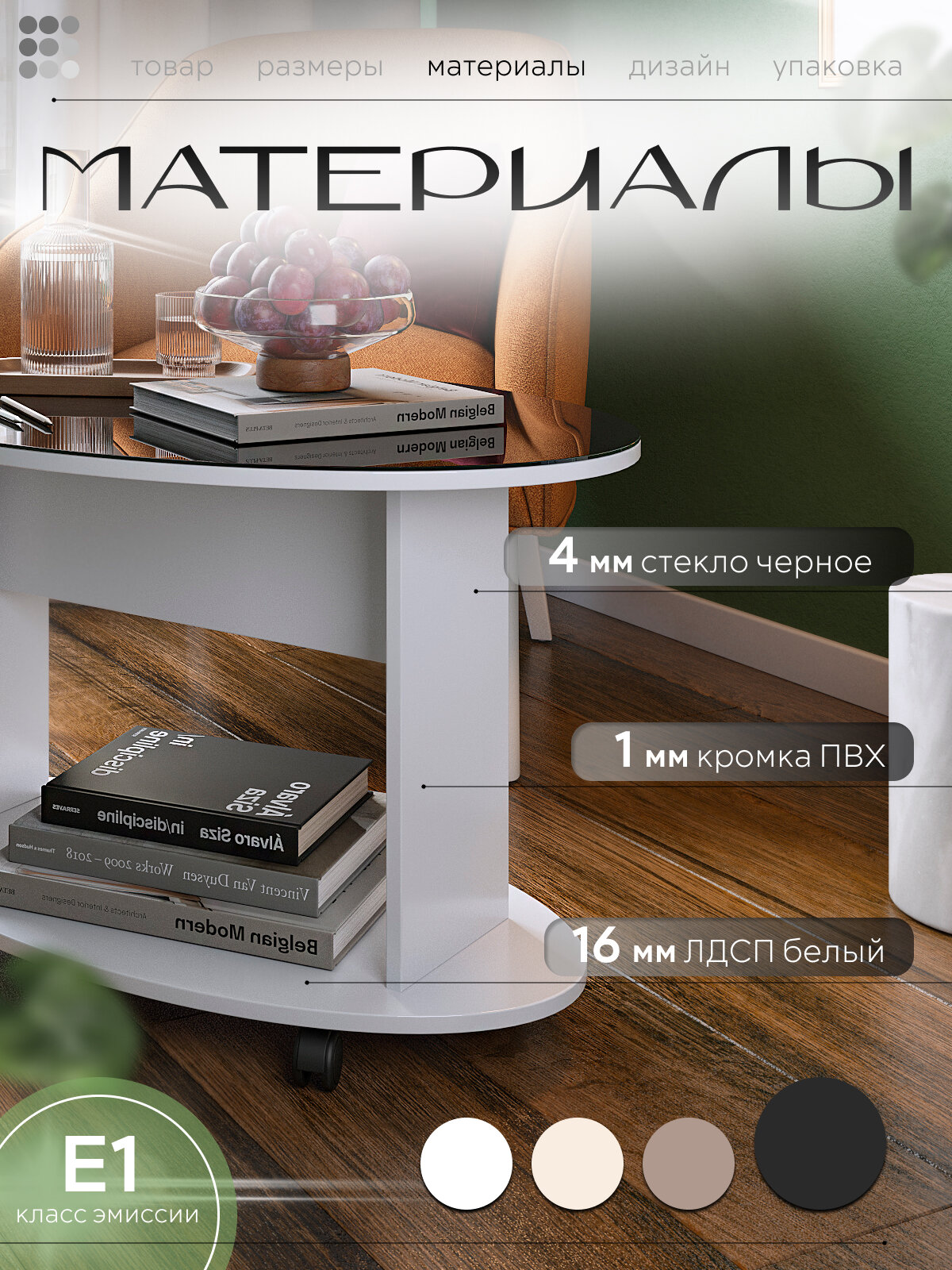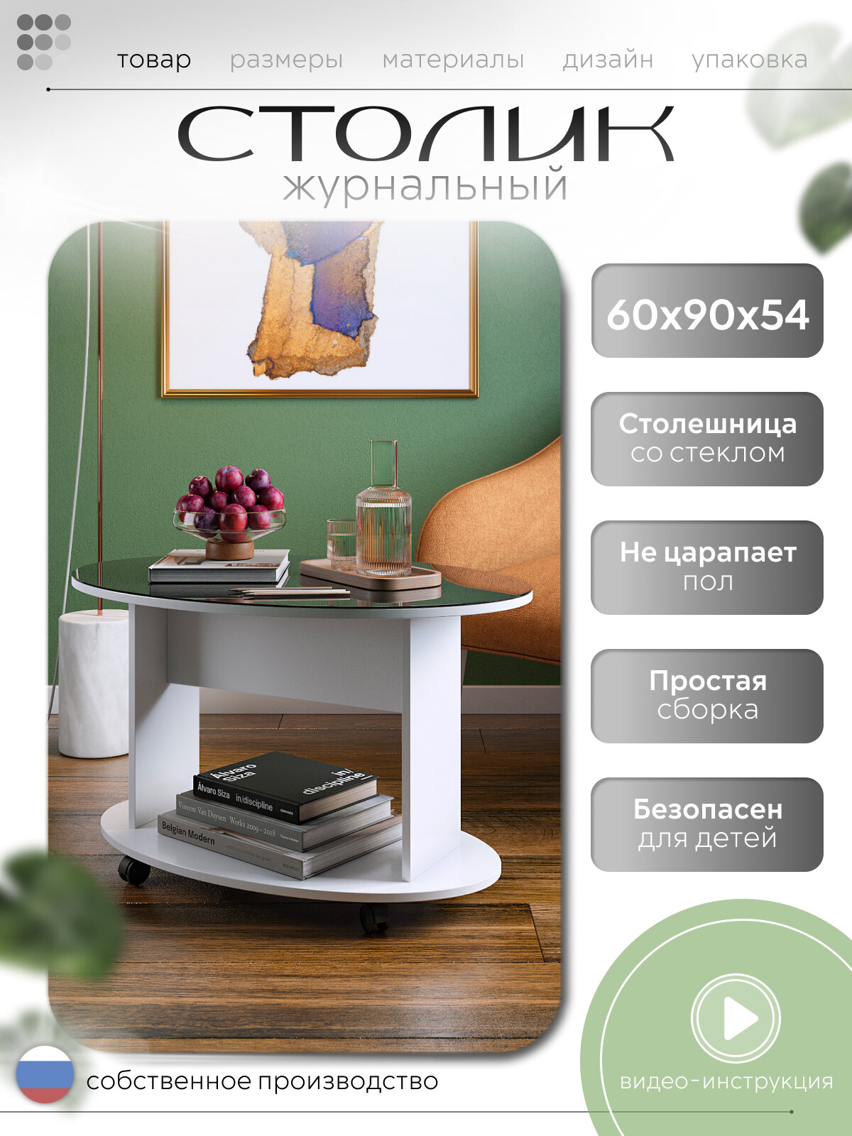 Журнальный столик на колёсиках 90х60х55 см, белый/стекло черное, Дуэт-1: сравнение цен, характеристики, фото, актуальное наличие и цены.