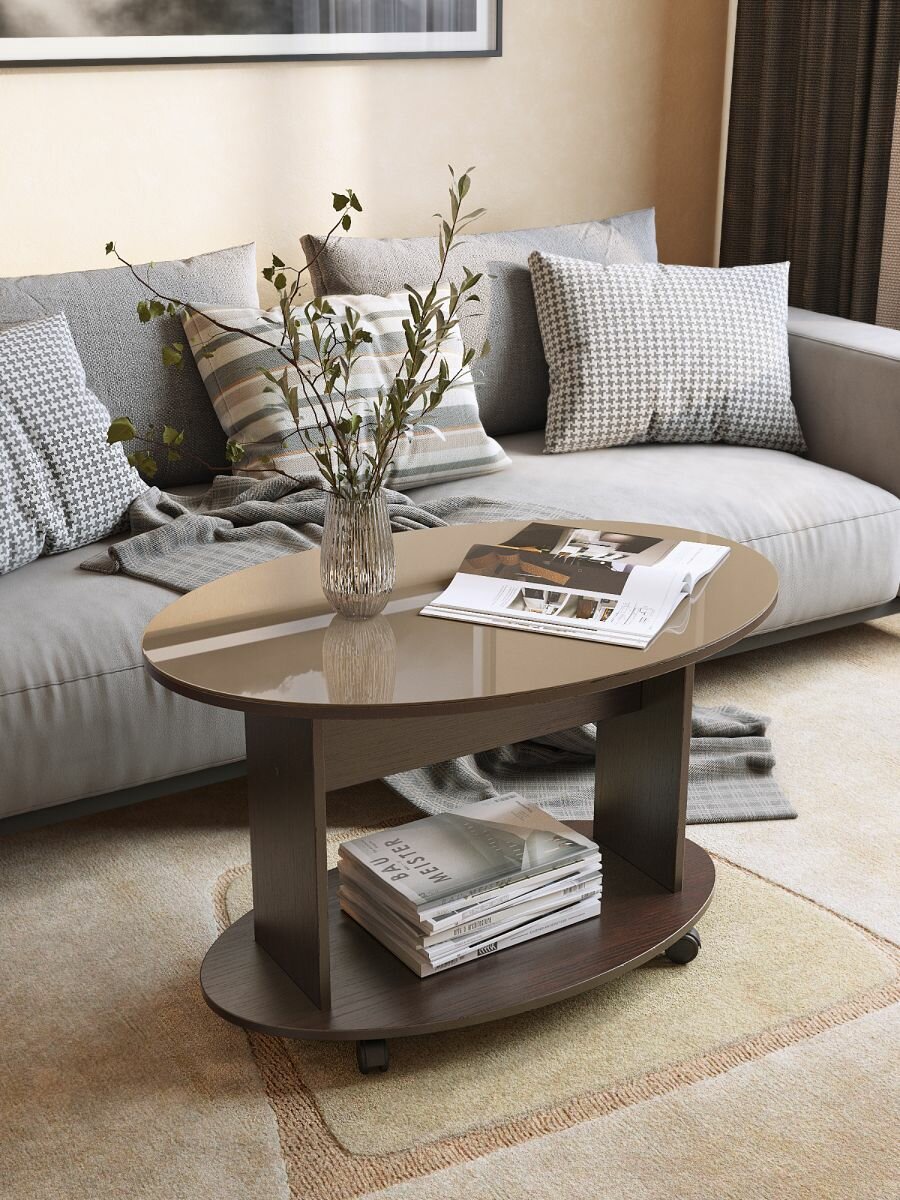 Журнальный столик на колёсиках ДУЭТ-1 венге/стекло капучино: сравнение цен, характеристики, фото, актуальное наличие и цены.