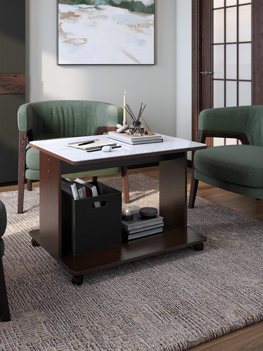 Купить Журнальный столик на колёсиках со стеклом дуэт венге/белый, 80х60х55 см. с доставкой по всей России. Журнальный столик на колёсиках со стеклом дуэт венге/белый, 80х60х55 см.: сравнение цен, характеристики, фото, актуальное наличие и цены.