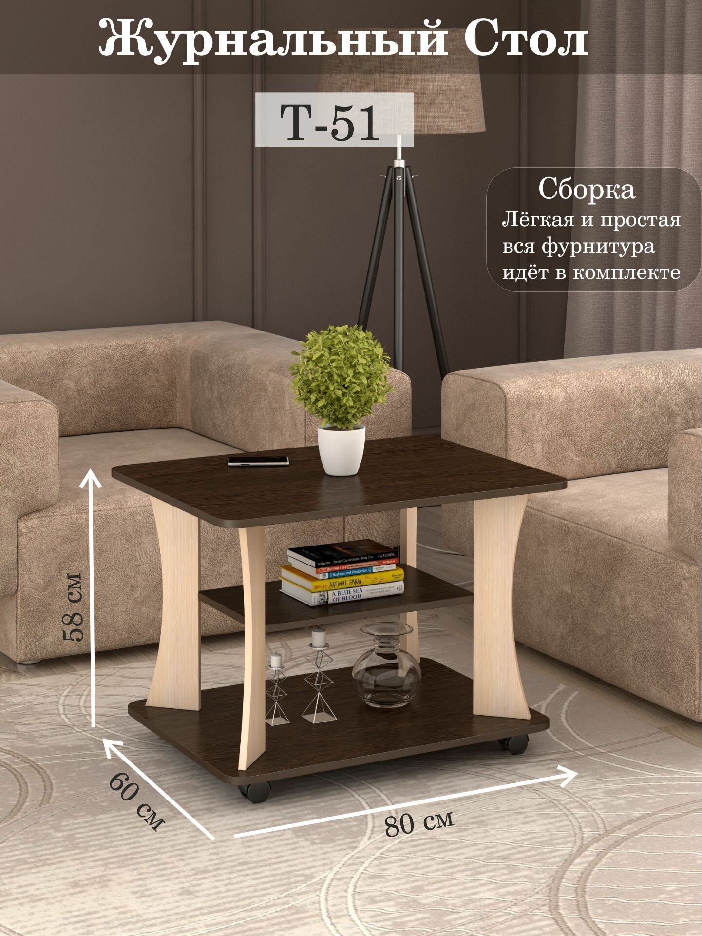 Купить Журнальный столик Т-51 Венге/Дуб молочный, на колесиках, 80х60х58 см с доставкой по всей России. Журнальный столик Т-51 Венге/Дуб молочный, на колесиках, 80х60х58 см: сравнение цен, характеристики, фото, актуальное наличие и цены.