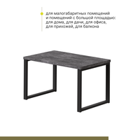 Дизайн журнального стола выполнен на стыке нескольких направлений: лофт, классика и минимализм. Прямолинейность форм и устойчивость конструкции в совокупности с толстой столешницей, которая имитирует слэб натурального древа или камня, подарят своему обладателю комфорт, качество, чувство надежности.