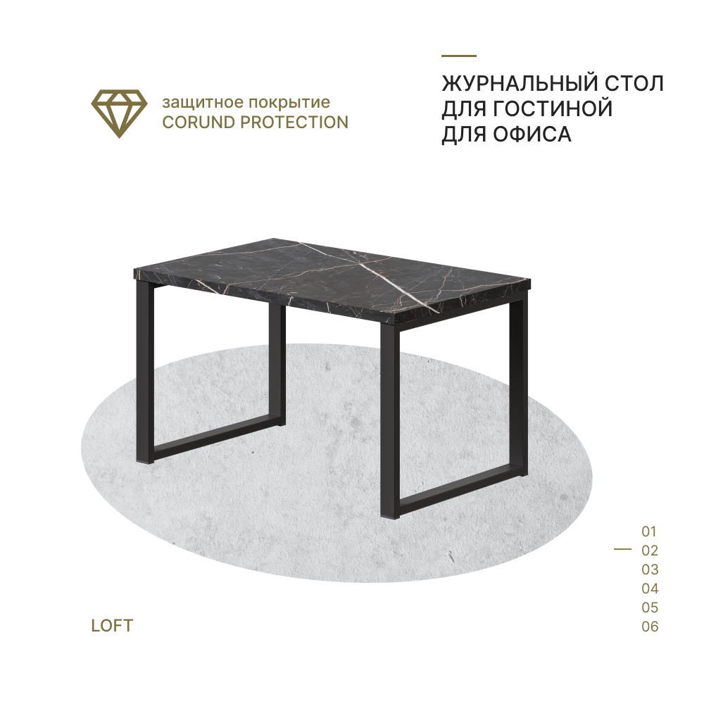 Журнальный столик в стиле лофт Alternative Loft Фаерстоун 780х500х450 мм
