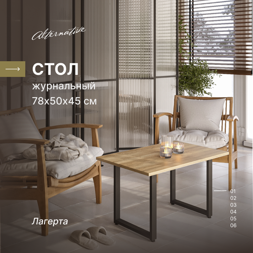 Дизайн журнального стола выполнен на стыке нескольких направлений: лофт, классика и минимализм. Прямолинейность форм и устойчивость конструкции в совокупности с толстой столешницей, которая имитирует слэб натурального древа или камня, подарят своему обладателю комфорт, качество, чувство надежности.