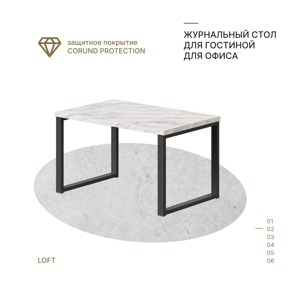 Дизайн журнального стола выполнен на стыке нескольких направлений: лофт, классика и минимализм. Прямолинейность форм и устойчивость конструкции в совокупности с толстой столешницей, которая имитирует слэб натурального древа или камня, подарят своему обладателю комфорт, качество, чувство надежности.