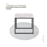 Подстолье выполнено из высококачественного металла, что обеспечивает прочную конструкцию стола. Стол имеет регулируемые опоры, которые компенсируют возможные неровности пола, не повреждают напольное покрытие.