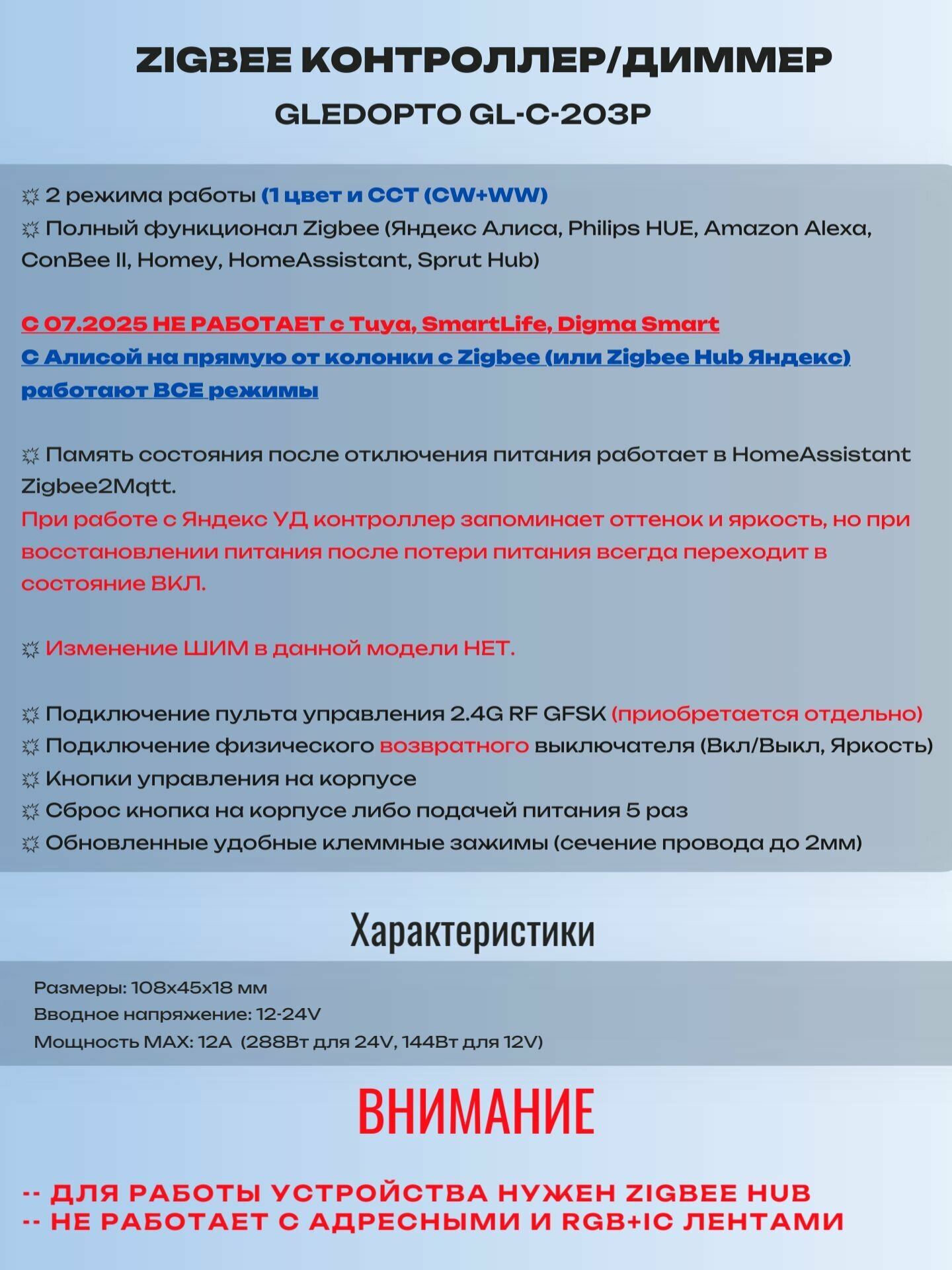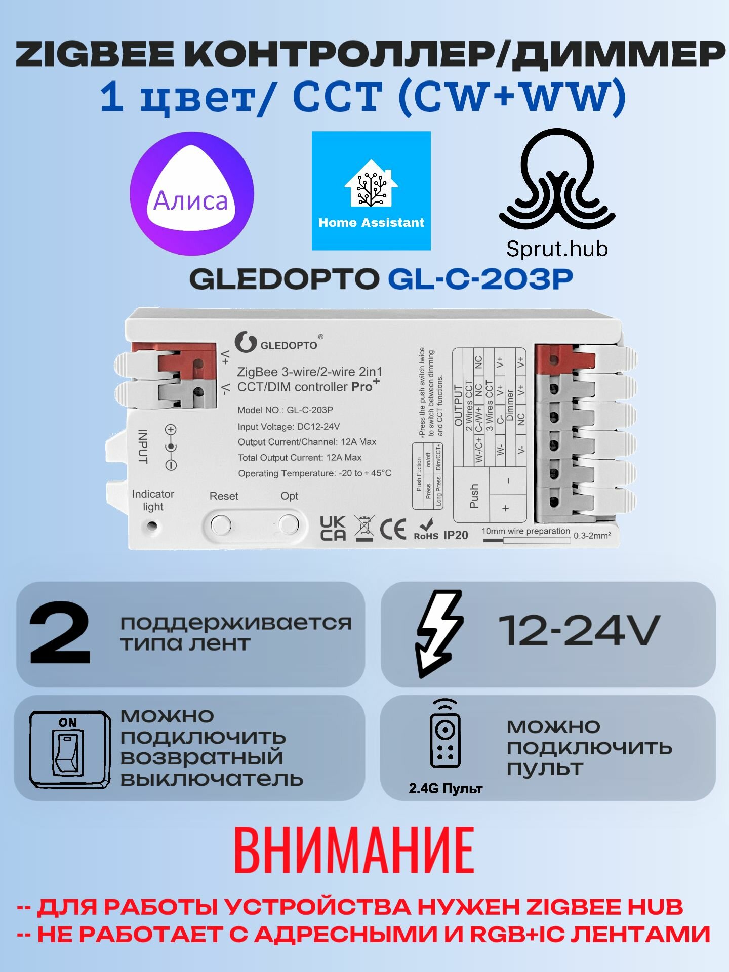 ZigBee контроллер (диммер) для светодиодных лент 12-24V 2in1 Один цвет/CCT: сравнение цен, характеристики, фото, актуальное наличие и цены.