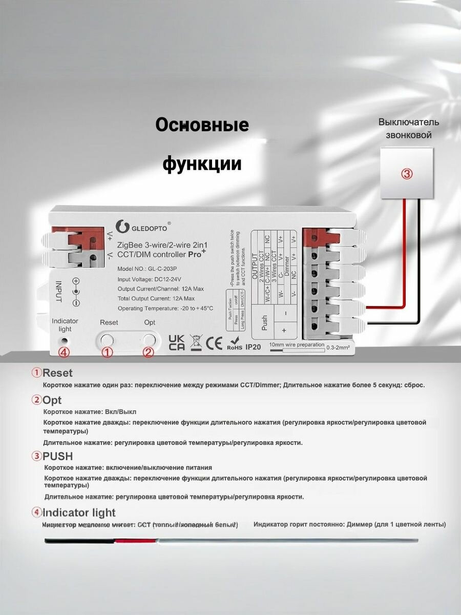 Купить ZigBee контроллер (диммер) для светодиодных лент 12-24V 2in1 Один цвет/CCT с доставкой по всей России.