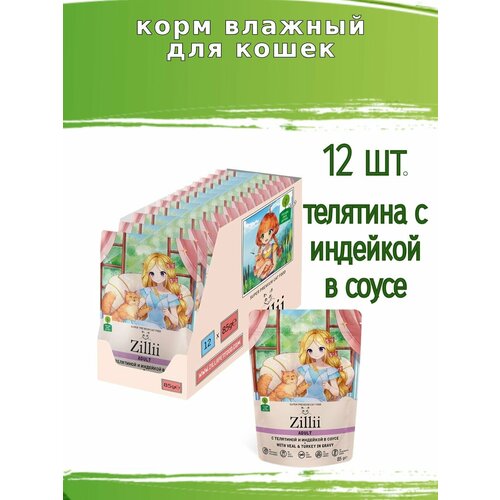 Полнорационный влажный корм для взрослых кошек ZILLII ADULT CAT with Veal and Turkey in gravy изготовлен c использованием телятины и мяса индейки. Мясо ягненка прекрасно усваивается и содержит достаточное для организма количество животных жиров, питательных веществ и микроэлементов. Телятина содержит много различных витаминов и микроэлементов, по богатству состава - это мясо одно из самых полезных. Телятина богата калием, натрием, фосфором. Телятина считается постным мясом, поскольку в ее вырезке меньше 3% жира. Содержание холестерина в телятине меньше, чем в говядине. Также в ней много желатина, который улучшает состояние суставов и свертываемость крови. Немало в телятине и холина, который необходим для правильной работы нервной системы. Индейка - полезное для кошек диетическое мясо, богатое таурином и витаминами. Содержащийся в индейке натрий помогает пополнить объемы плазмы в крови и обеспечить нормальные обменные процессы.
