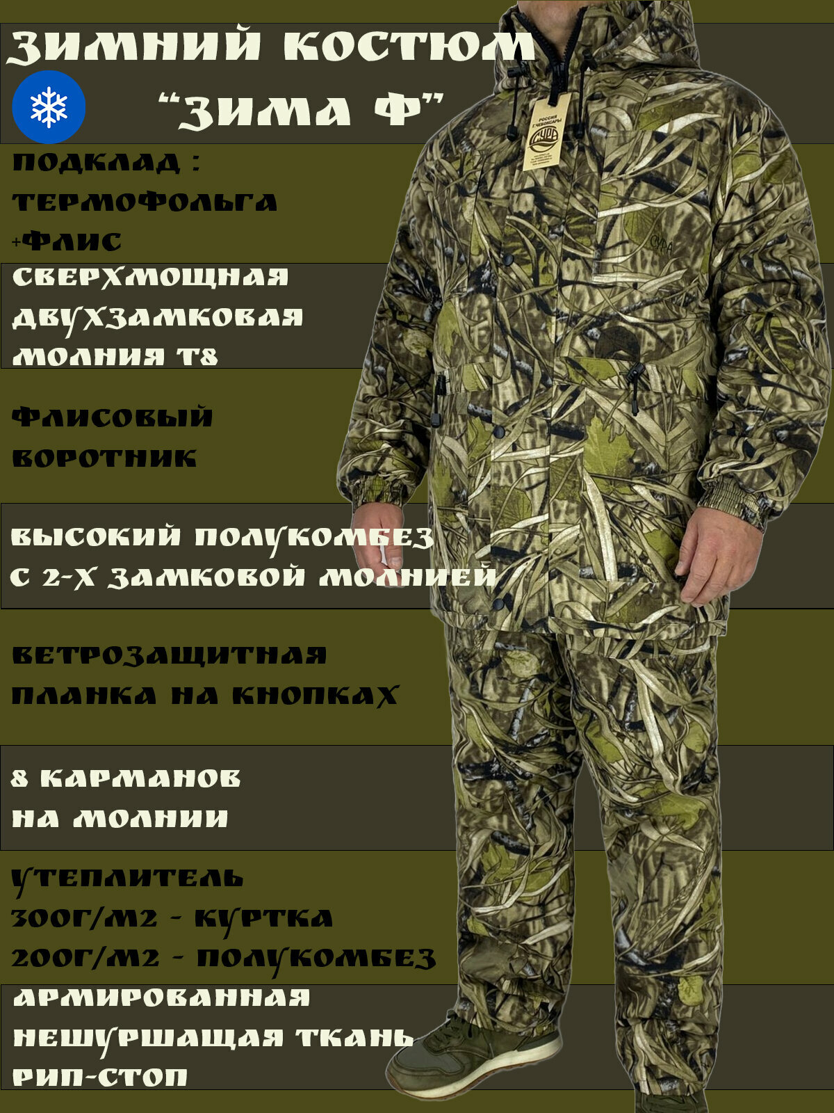 Зимний камуфлированный костюм с полукомбинезоном зимаф на флисе , синтепоне с подкладом из термофольги для рыбалки , работы и туризма: сравнение цен, характеристики, фото, актуальное наличие и цены.