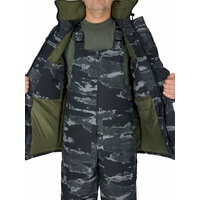 Купить Зимний камуфлированный костюм с полукомбинезоном зимаф на флисе , синтепоне с подкладом из термофольги для рыбалки , работы и туризма с доставкой по всей России.