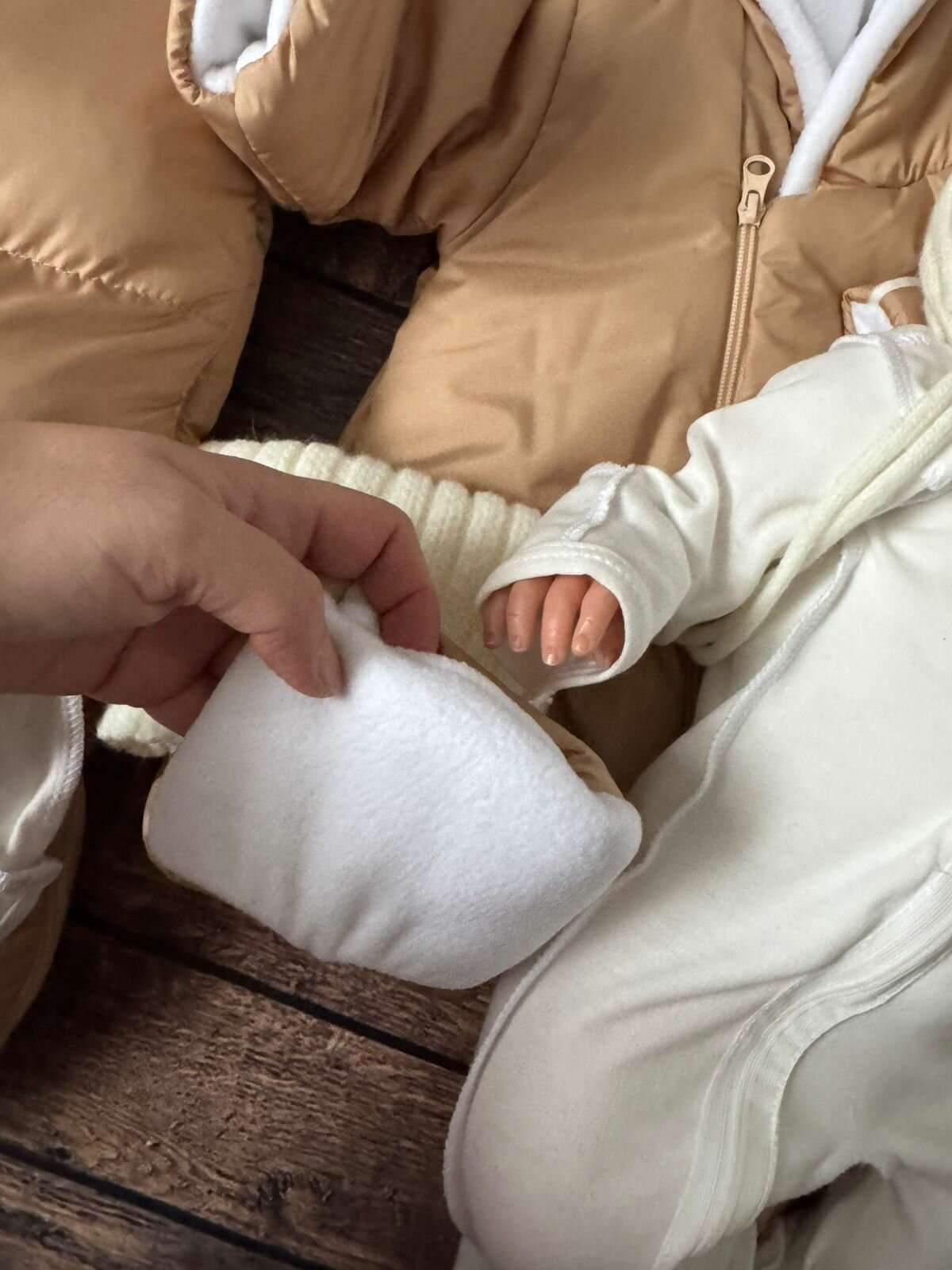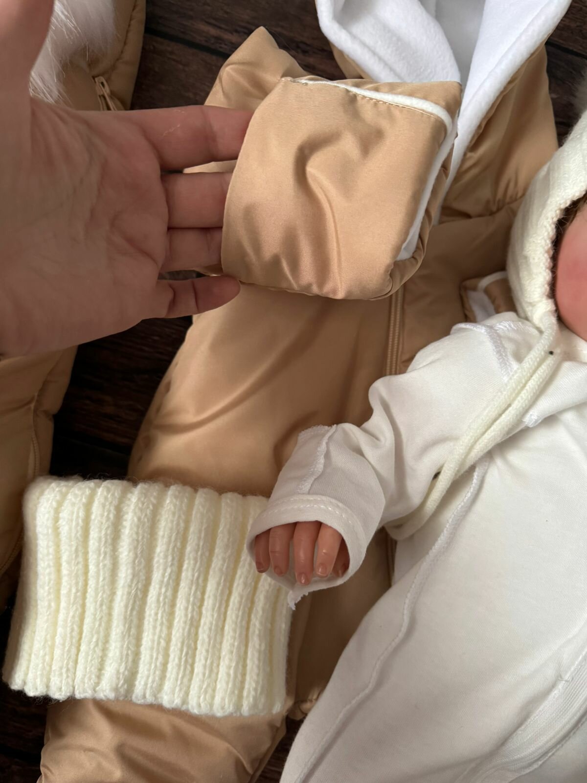 | Комплектация | конверт на овчине и изософте, шапочка утеплённая, снуд, комбинезон на хлопке |