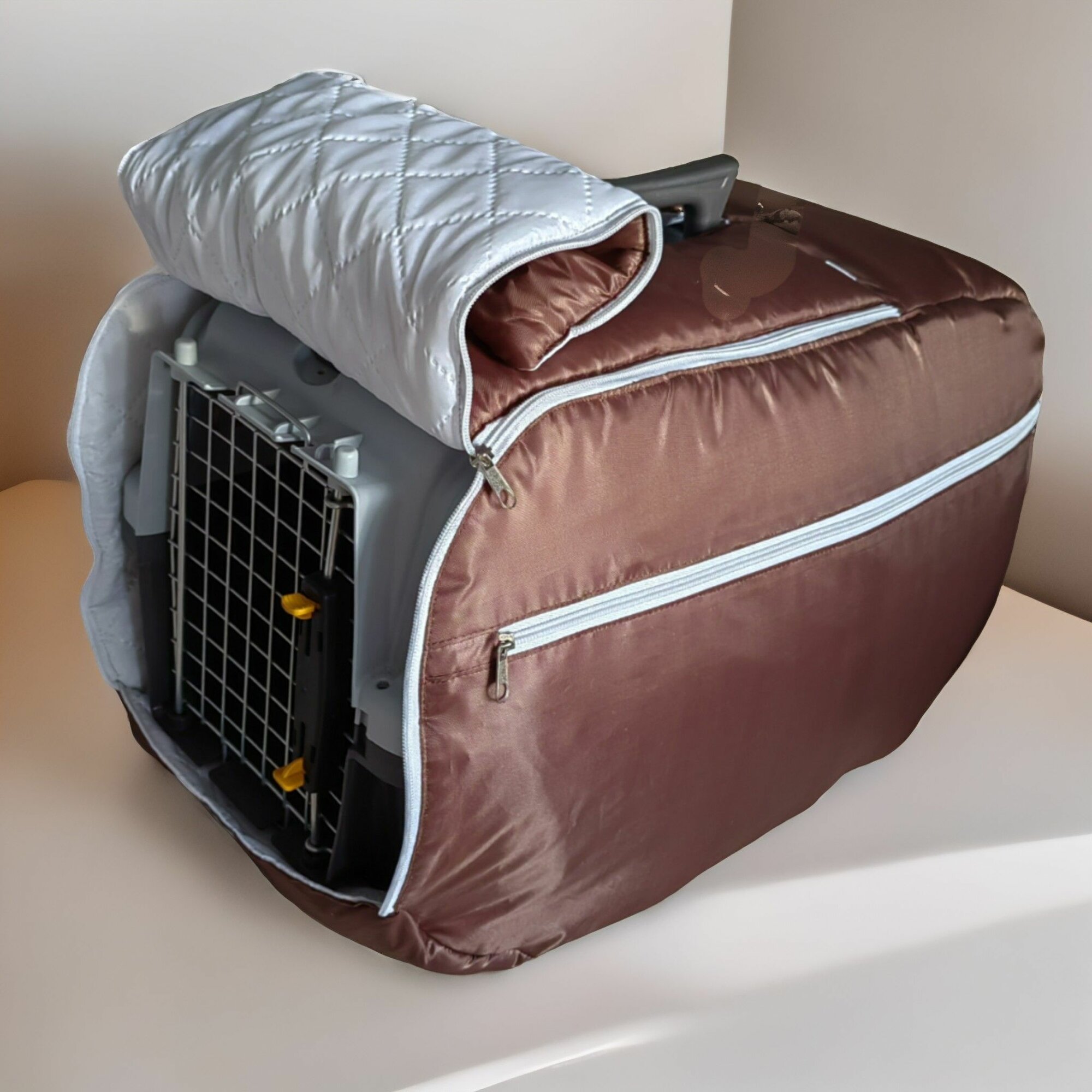Стильный ультратеплый зимний чехол на пластиковую переноску для животных. Необходим для комфортного путешествия кошек и собак.