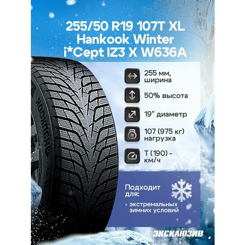 Купить Зимняя нешипованная шина Hankook Winter i*Cept IZ3 X W636A 255/50 R19 107T XL с доставкой по всей России. Зимняя нешипованная шина Hankook Winter i*Cept IZ3 X W636A 255/50 R19 107T XL: сравнение цен, характеристики, фото, актуальное наличие и цены.