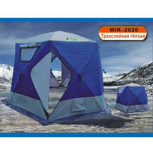 Утепленная зимняя 3-х слойная палатка для рыбалки MirCamping Куб 2, шестиугольная, размеры 3х3х2,05 м, синяя.