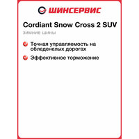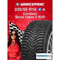 Зимняя шина Cordiant Snow Cross 2 SUV 235/55 R18 104T предназначена для эксплуатации в зимний период на автомобилях SUV-класса.