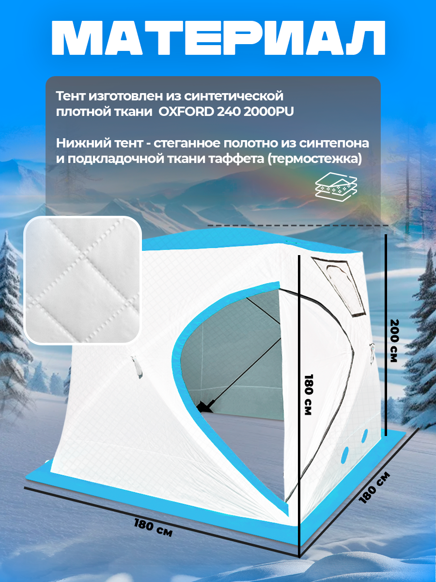 Купить Зимняя утепленная трехслойная палатка куб 1,8*1,8*2,0 м, трехместная с доставкой по всей России. Зимняя утепленная трехслойная палатка куб 1,8*1,8*2,0 м, трехместная: сравнение цен, характеристики, фото, актуальное наличие и цены.