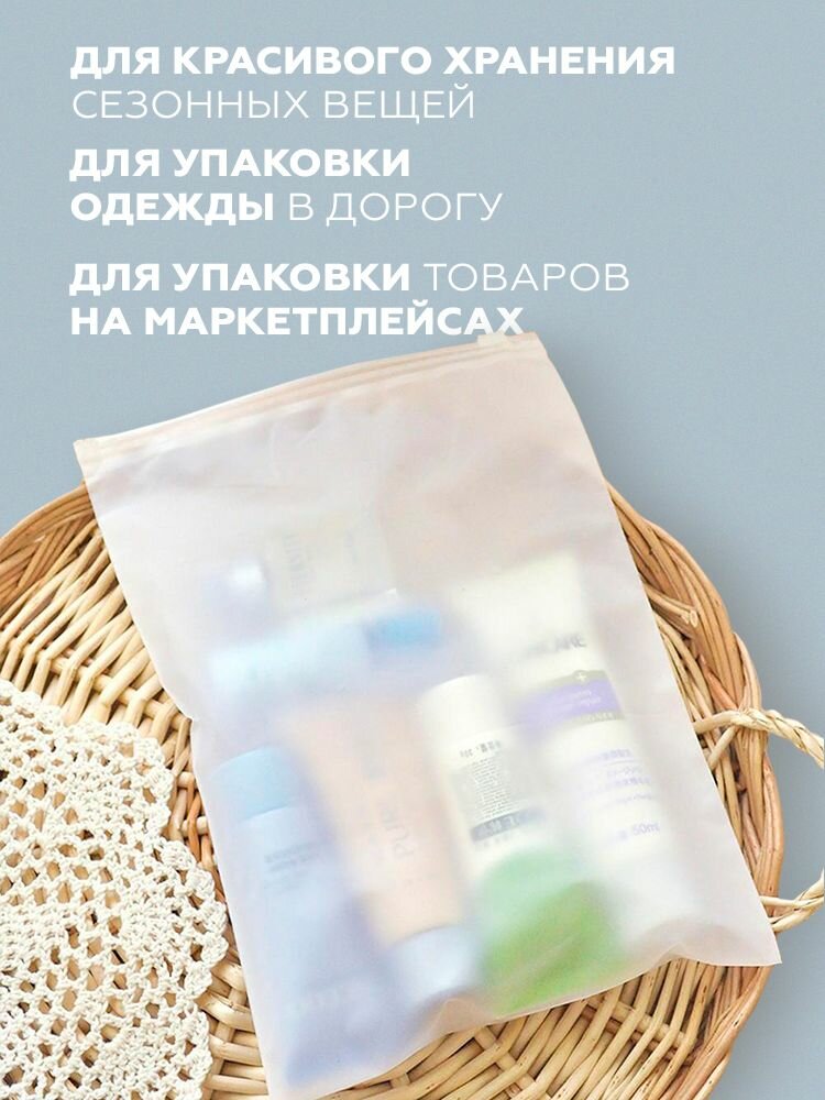 Отзыв покупателя: "Я приобрел пакеты с бегунком для упаковки своей одежды и обуви. Они оказались идеальными - прочные, герметичные и приятные на ощупь. Теперь я могу быть уверен, что мои товары останутся в отличном состоянии. Очень доволен покупкой!"