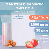 Купить Зип пакеты с застежкой 30х40 см 1000 штук многоразовые, пакеты фасовочные для заморозки и хранения продуктов с доставкой по всей России.