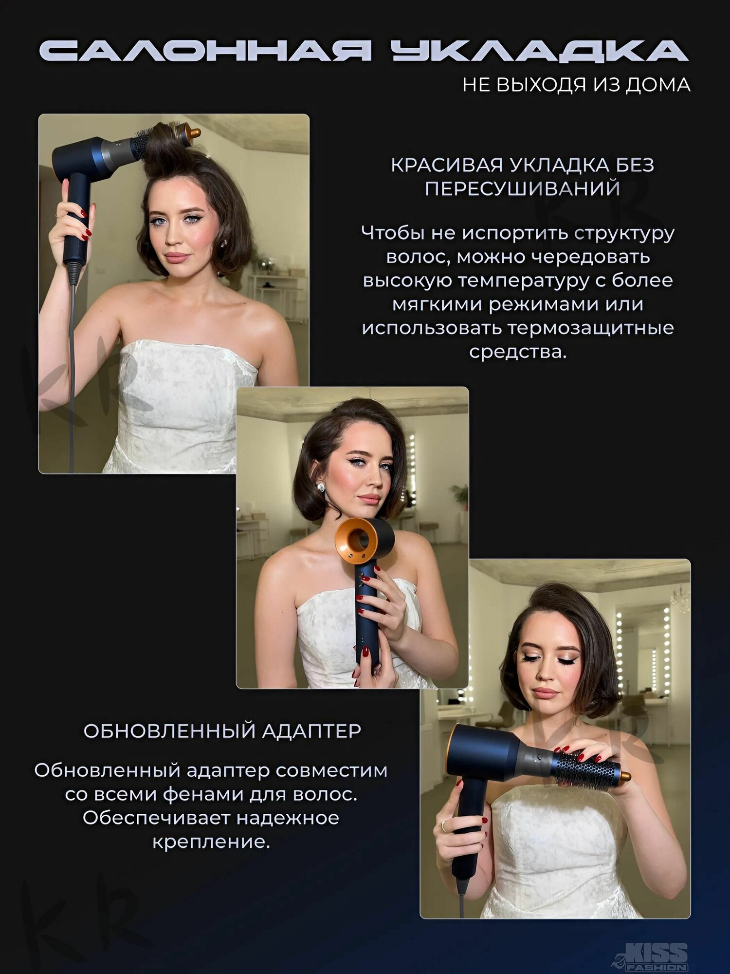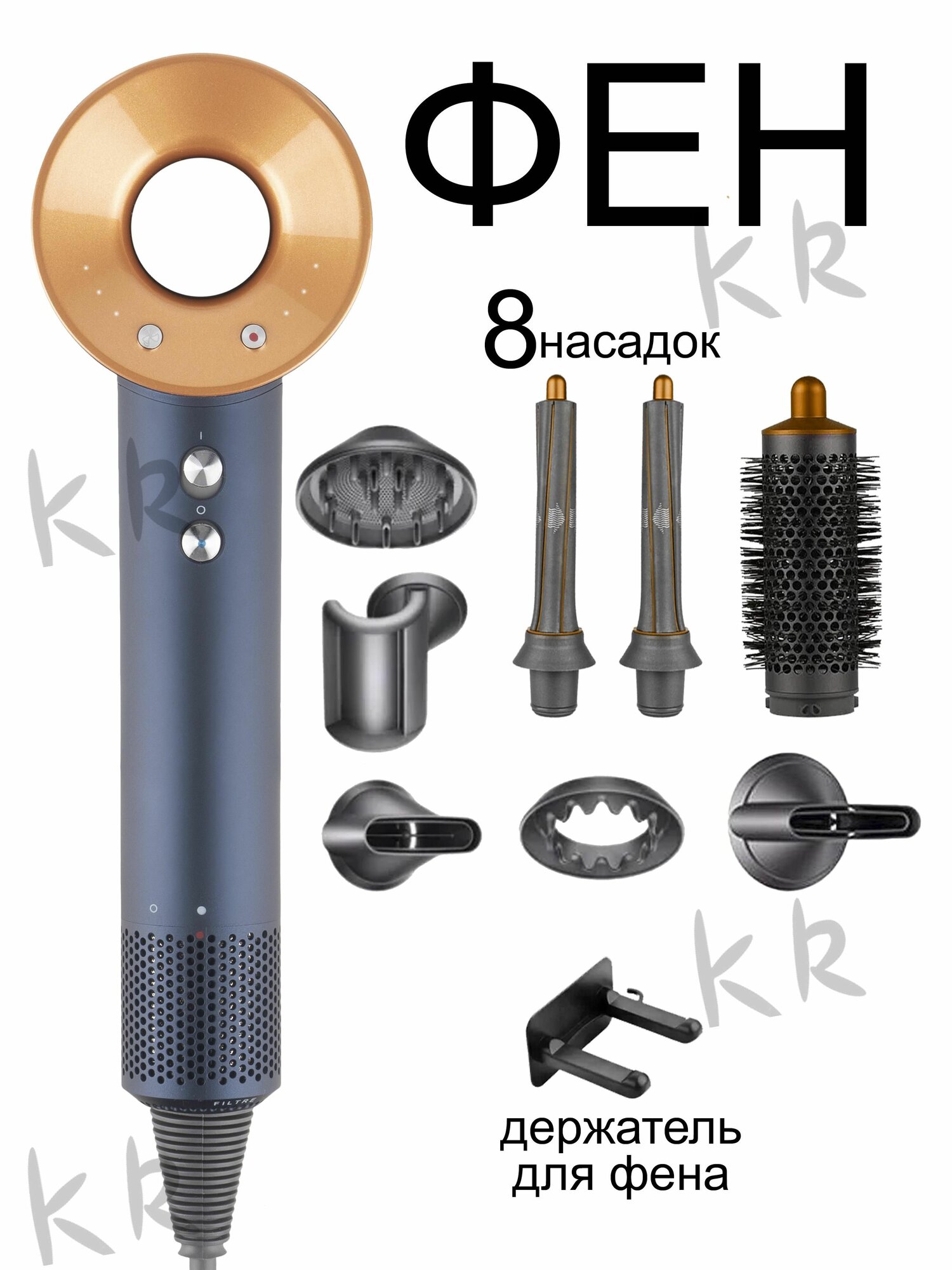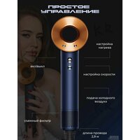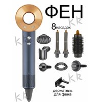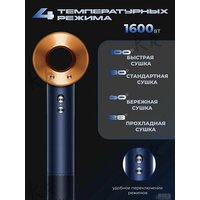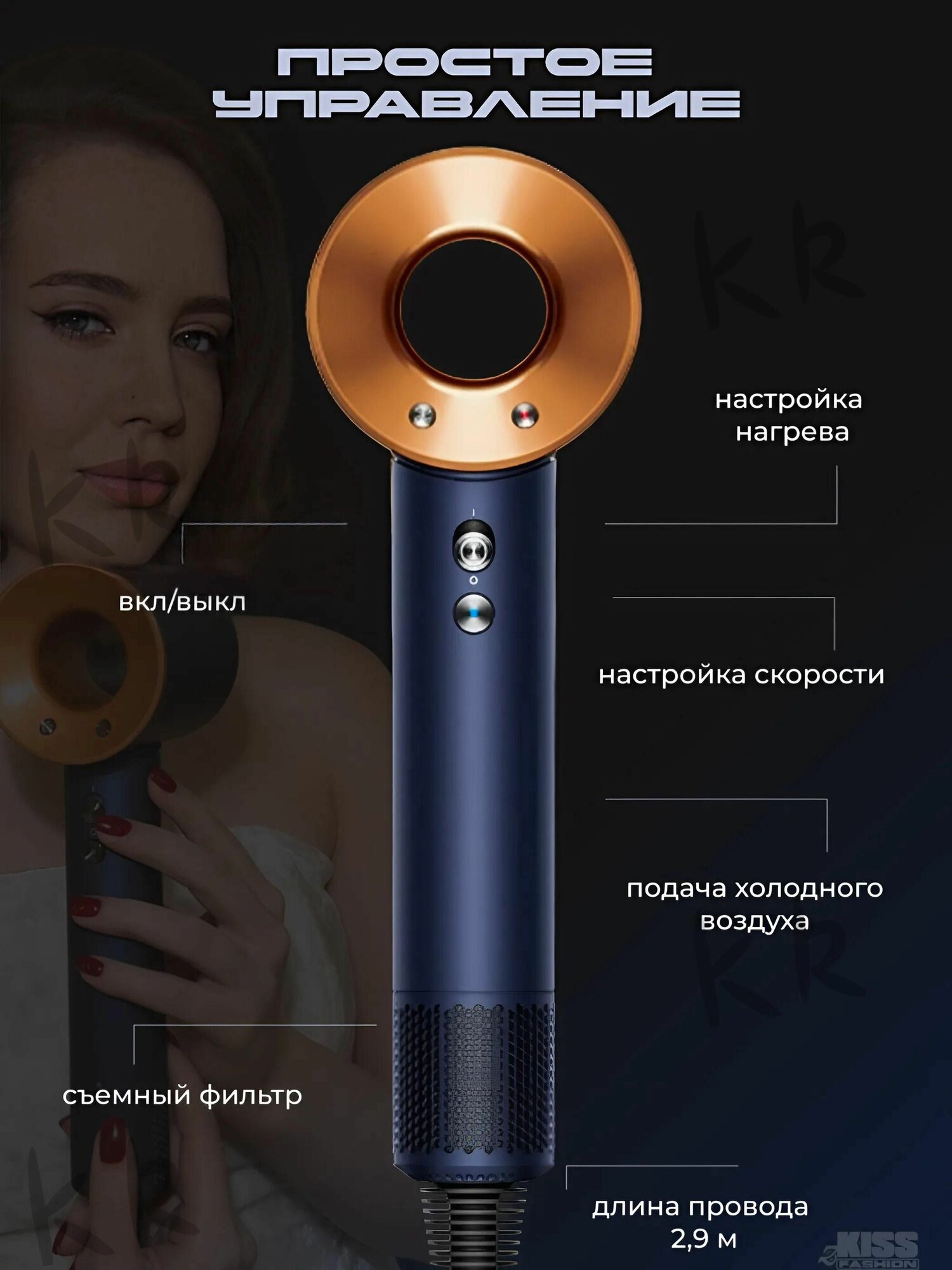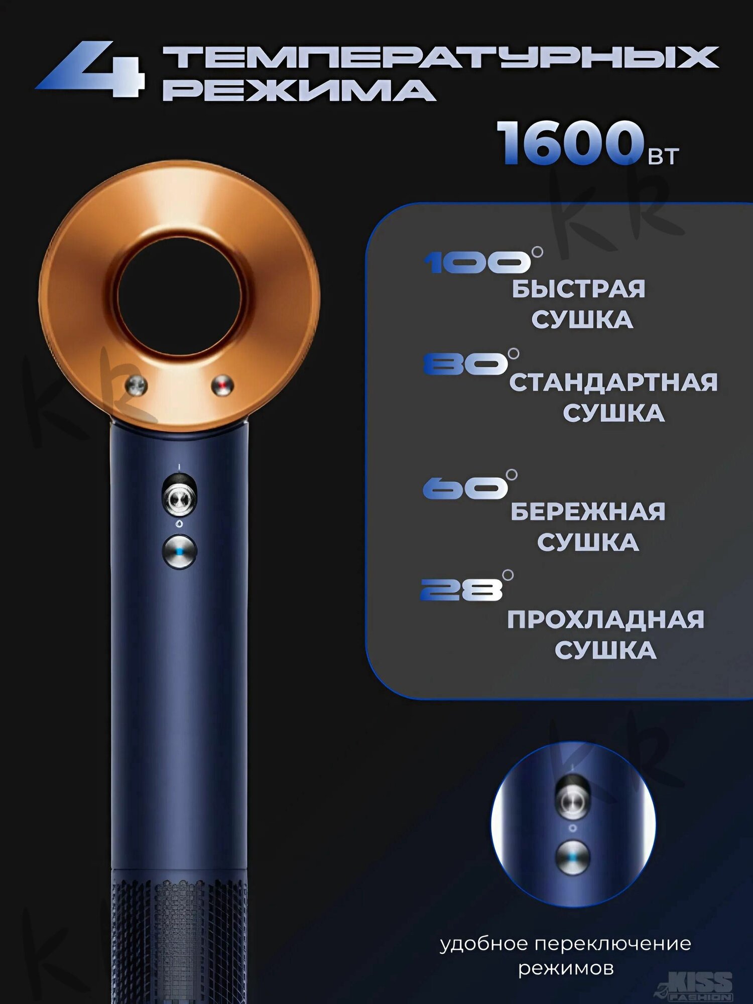 ZKissfashion Фен для волос усиленный шнур 1600 Вт, скоростей 3, кол-во насадок 7, темно-синий, золотой: сравнение цен, характеристики, фото, актуальное наличие и цены.