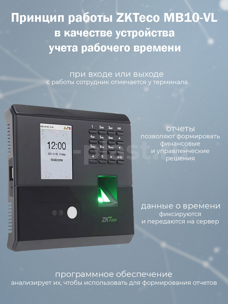 Особенности терминала учета рабочего времени ZKTeco MB10-VL