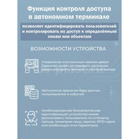 - Несколько методов проверки: лицо/отпечаток пальца/карта/пароль
