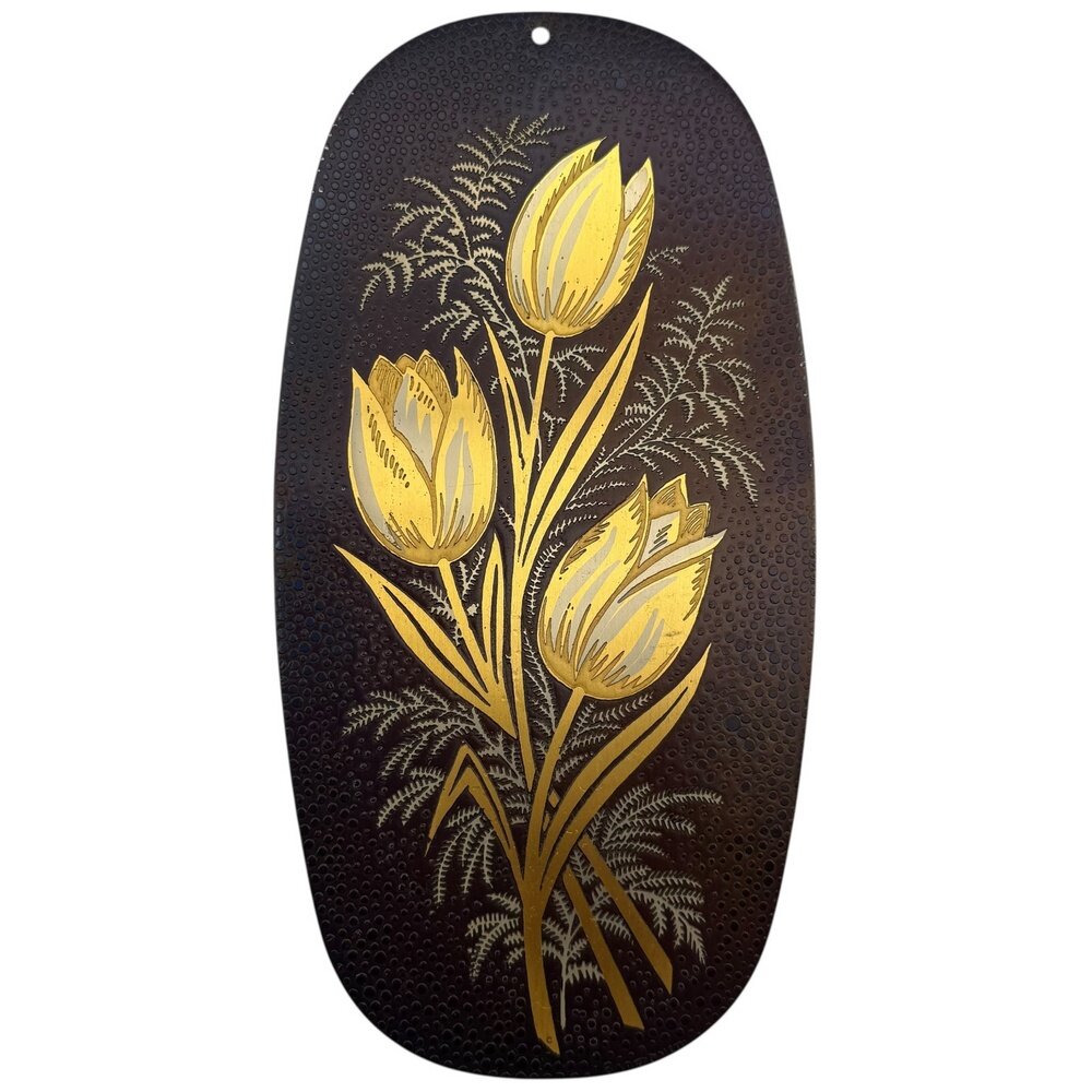 Купить Златоустовская настенная гравюра на стали «Тюльпаны», 11*21.5 см, 1960-1970 гг. Златоуст, СССР с доставкой по всей России.