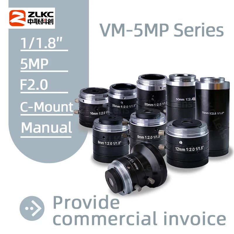 Купить ZLKC C Mount 1/1,8 дюйма 5MP 75 мм Объектив 4 мм 6 мм 8 мм 12 мм-50 мм Объектив с фиксированным фокусным расстоянием F2.0 с ручной диафрагмой машинного зрения FA, 50mm FA Lens с доставкой по всей России.