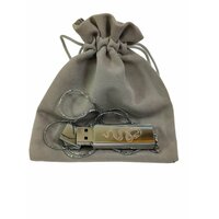 В комплекте с флешкой идет бархатный мешочек, который позволяет хранить и переносить флешку в безопасности.