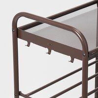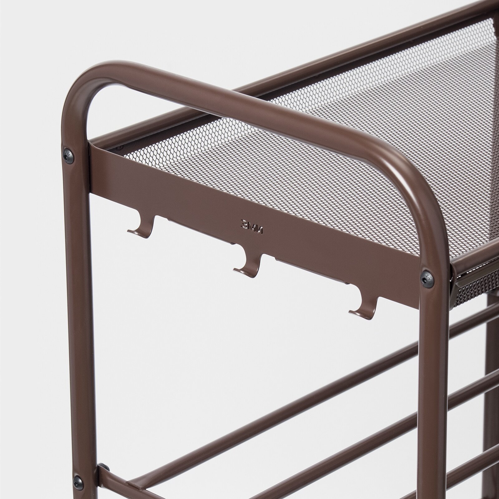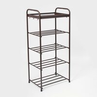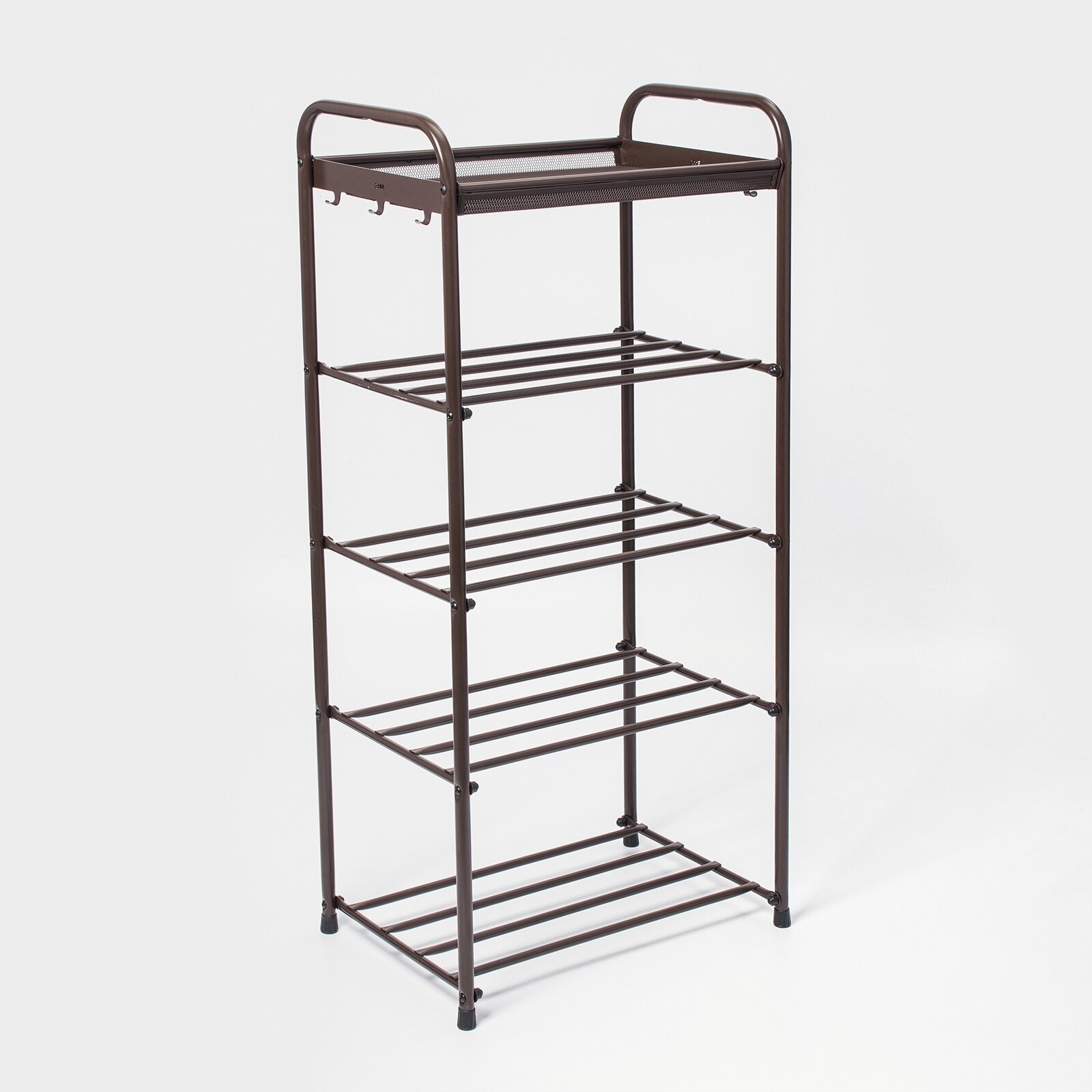 Металлическая подставка «Альфа 15» от российского производителя ЗМИ - это идеальное решение для грамотной системы организации хранения обуви в прихожей или коридоре. Прочная обувница с полочками позволяет убрать кроссовки или туфли с пола, она изготовлена из покрытого порошковой краской металла, что делает ее легкой в уходе и чистке. Компактное устройство оснащено 4 ярусами + 1 верхней корзиной, что позволяет разместить до 8 пар обуви (в зависимости от размера). Верх изделия дополняет удобный лоток с решеткой в мелкую сетку и с бортиками, которая пригодится для размещения средств по уходу за обувью или головных уборов, сумок, ключей и других мелочей, искусственных или живых цветов. Большая комнатная стойка из металла дополнена крючками по бокам, которые позволят подвесить необходимые аксессуары: зонтик, обувную ложку и другие предметы. Ножки домашнего стеллажа защищают пластиковые заглушки, которые спасут напольное покрытие от царапин. Стильный органайзер для обуви с прочным каркасом и удобными полками представлен в разных размерах, выбирайте идеально подходящий для вашего помещения аксессуар, кликая по изображению модели в верхней части карточки товара. Изделие представлено в черном, молочно-белом и медном (коричневом) окрасе, чтобы вы могли подобрать идеально подходящую к дизайну вашего интерьера модель. Высококачественная обувница - галошница в виде вертикальной стойки с открытыми полками, позволяющими воздуху свободно циркулировать, поможет вам сушить и хранить всю вашу обувь в одном месте. Разрешенная нагрузка на одну полку 8 кг. Прочная многоуровневая этажерка идеально подходит для использования в коридорах и прихожей квартиры, дома или дачи, а также в детских комнатах малышей: девочек или мальчиков, и подростков, в ванных, гостиных и взрослых спальнях, гардеробных и раздевалках, на балконах и в банях, в офисе или студии - везде, где у вас может быть много обуви или вещей, которые хочется хранить на виду. Вместительную этажерку можно использовать как уличную, вынося ее летом вместе с обувью на просушку, устанавливать в дачном помещении. Универсальная мебель из прочного материала станет основным или дополнительным аксессуаром для хранения вашей любимой обуви. Многофункциональный органайзер для обуви поставляется в разобранном виде и требует сборки. В комплекте есть вся необходимая для крепления и сборки фурнитура, инструменты и пошаговая инструкция. Изделие приходит покупателю в прочной картонной упаковке с ручкой для удобного перемещения и защиты деталей от повреждений в процессе доставки. Товар поставляется напрямую от производителя, что позволяет приобрести его недорого и воспользоваться расширенной гарантией на 3 года. У нас есть акции и распродажи, вы можете купить наши товары в подарок со скидкой!