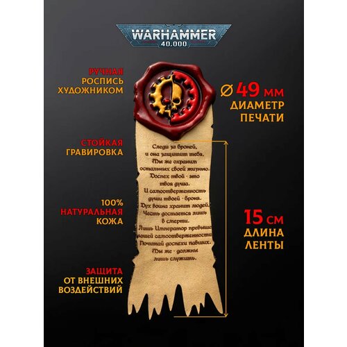 4. Уникальная литания из натуральной кожи: - Литания с молитвой из официального перевода вселенной Warhammer 40k. - Придает изделию премиальный вид. - Устойчива к износу и повреждениям. - Текст выполнен методом гравировки- не сотрется и не смоется.