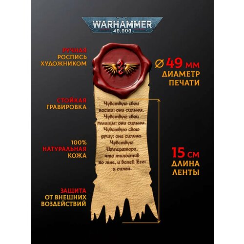 4. Уникальная литания из натуральной кожи: - Литания с молитвой из официального перевода вселенной Warhammer 40k. - Придает изделию премиальный вид. - Устойчива к износу и повреждениям. - Текст выполнен методом гравировки- не сотрется и не смоется.