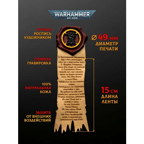 4. Уникальная литания из натуральной кожи: - Литания с молитвой из официального перевода вселенной Warhammer 40k. - Придает изделию премиальный вид. - Устойчива к износу и повреждениям. - Текст выполнен методом гравировки- не сотрется и не смоется.