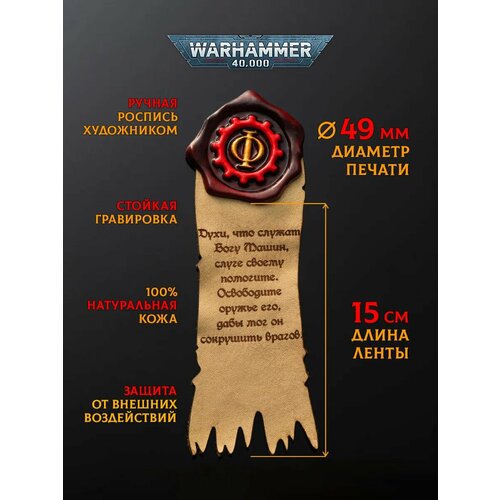 4. Уникальная литания из натуральной кожи: - Литания с молитвой из официального перевода вселенной Warhammer 40k. - Придает изделию премиальный вид. - Устойчива к износу и повреждениям. - Текст выполнен методом гравировки- не сотрется и не смоется.