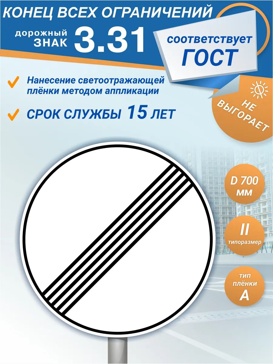 Знак дорожный 3.31 Конец всех ограничений: сравнение цен, характеристики, фото, актуальное наличие и цены.