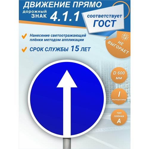 Металлический дорожный знак 4.1.1 Движение прямо
