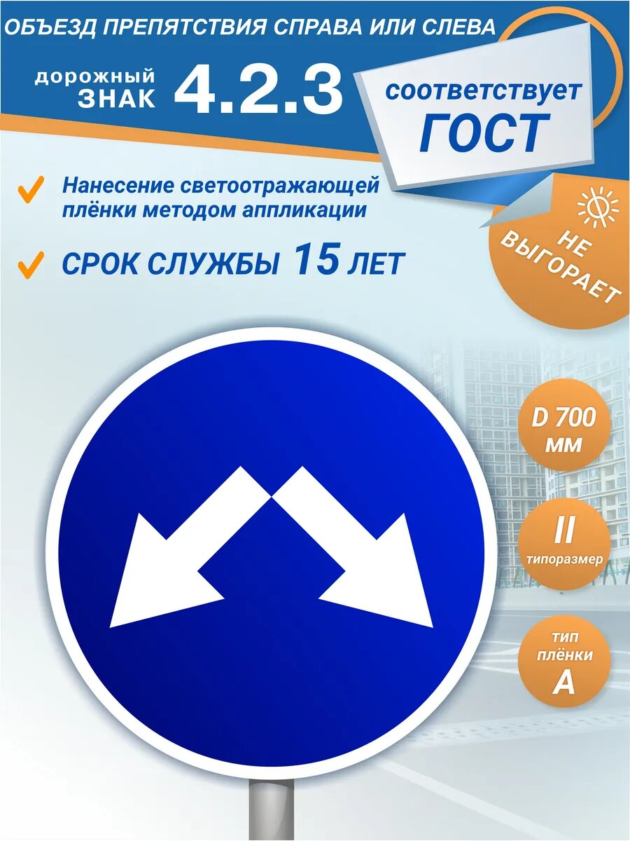 Знак дорожный 4.2.3 Объезд препятствия справа или слева: сравнение цен, характеристики, фото, актуальное наличие и цены.