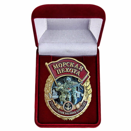 Знак участника "Морская пехота" поставляется в бархатистом футляре, который обеспечивает его сохранность и защищает от царапин и повреждений.