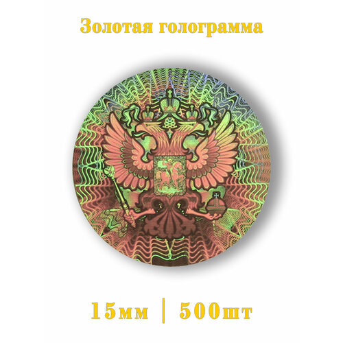 Голограмма это наклейка которая наносится на документы или продукцию. Наклейки с голографическим фоном или изображением и прозрачный ламинат эффективные средства защиты документов и товаров от подделки и оригинальный маркетинговый ход. Голографический ламинат сделан из полимерных материалов. Голографическая наклейка имеет особенный дизайн и форму. Голографическая марка используется для защиты таких важных документов как паспорт, удостоверение, пропуск. Голограммы на справки и мед книжки используются в мед. учреждениях. Купить галограммы защитные можно для повышения имиджа продукции. Использование голографических этикеток на товарах придает им необычный дизайн. Стандартные голограммы можно использовать на упаковке, чтобы предотвратить преждевременное вскрытие. Голограмма Герб РФ имеет диаметр 15 мм, цвет золото.