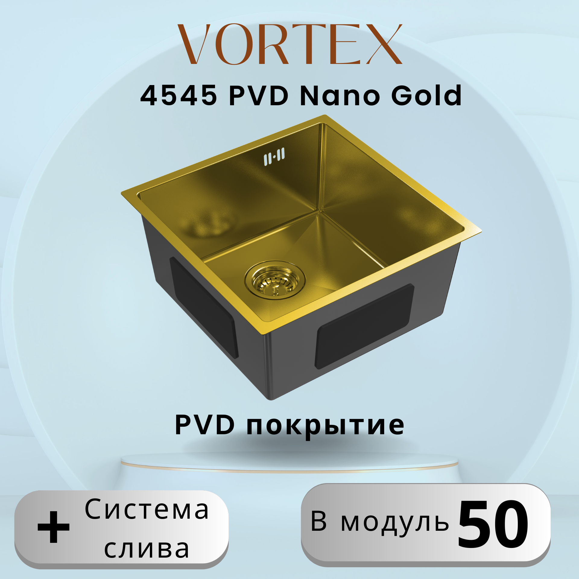 Мойка кухонная 4545 Gold 45х45 см золото, нержавеющая сталь, квадратная, PVD покрытие: сравнение цен, характеристики, фото, актуальное наличие и цены.