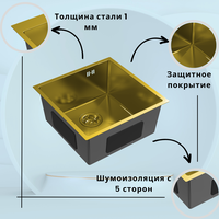 Купить Мойка кухонная 4545 Gold 45х45 см золото, нержавеющая сталь, квадратная, PVD покрытие с доставкой по всей России.