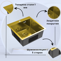 Мойка Vortex 5050 — мойка из нержавеющей стали с поверхностью PVD (вариант покрытия указан в карточке при выборе товара). В карточке товара можно выбрать вариант товара.