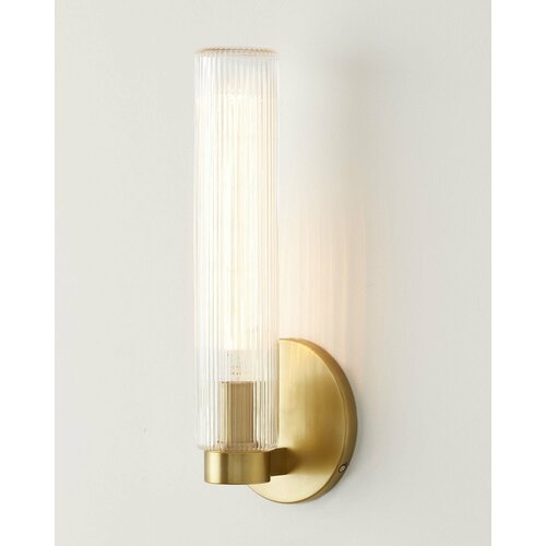 Золотое бра “Батлер” – это стильный осветительный декор, который выделяется своим стилем и дизайном. Одной из главных особенностей этого бра является его рифлёный стеклянный плафон. Он обладает проработанной детализацией, который позволяет ему прекрасно рассеивать свет, создавая мягкую и уютную атмосферу в вашем помещении. Металлический корпус бра выполнен в цветовой гамме – латунь, который еще больше подчеркивает его стиль. Этот стильный предмет освещения идеально подойдет для ванных комнат, спальни или гостиной.
