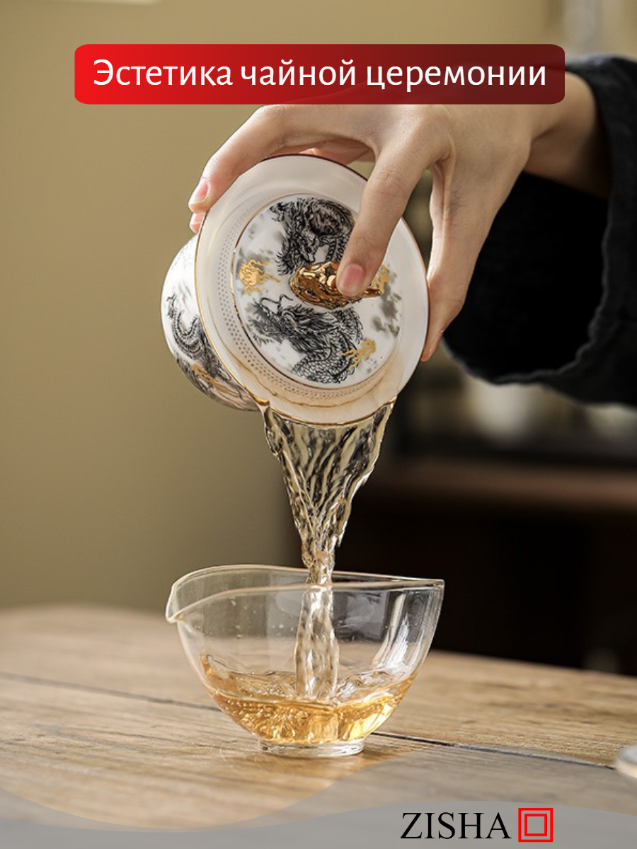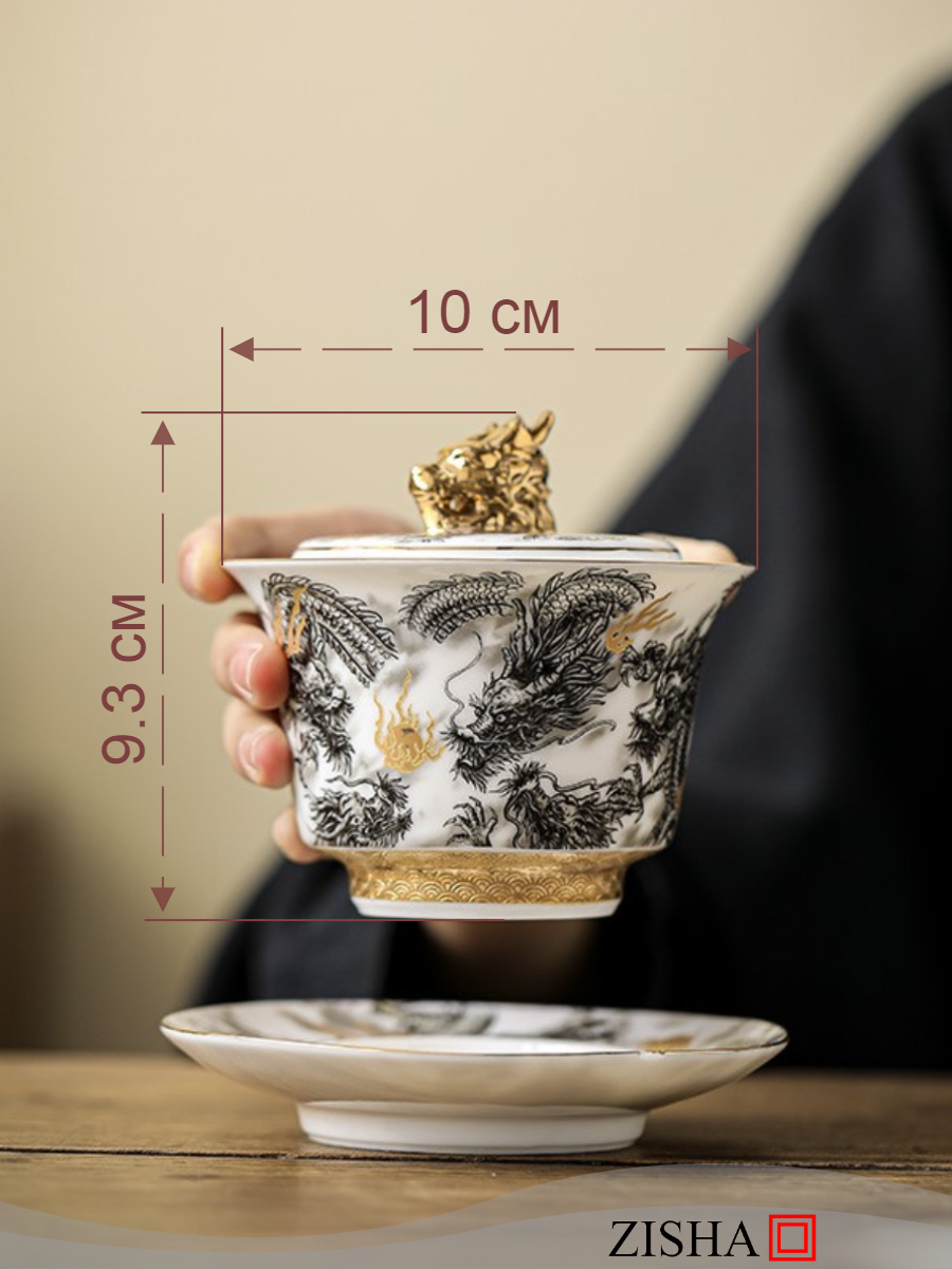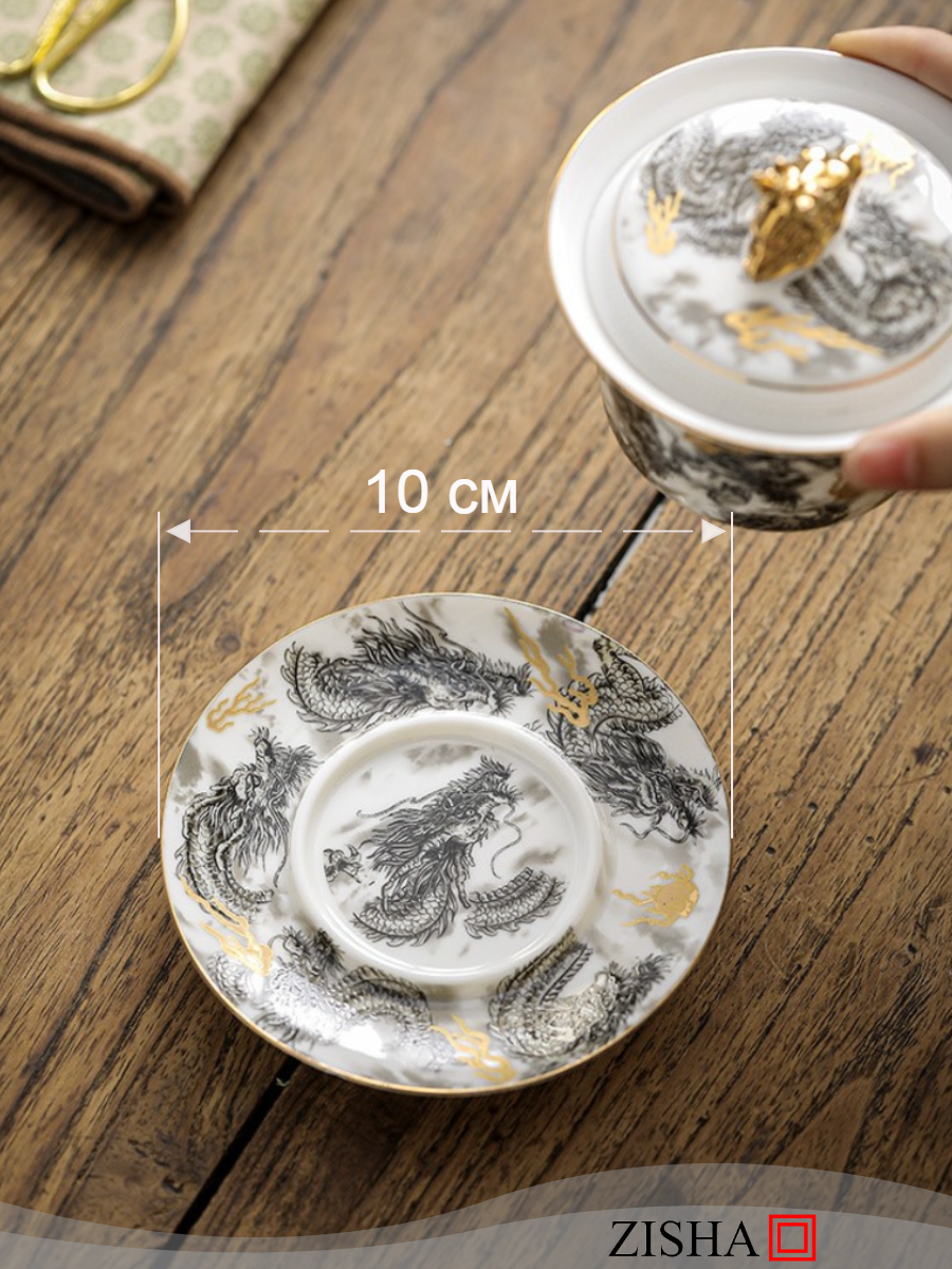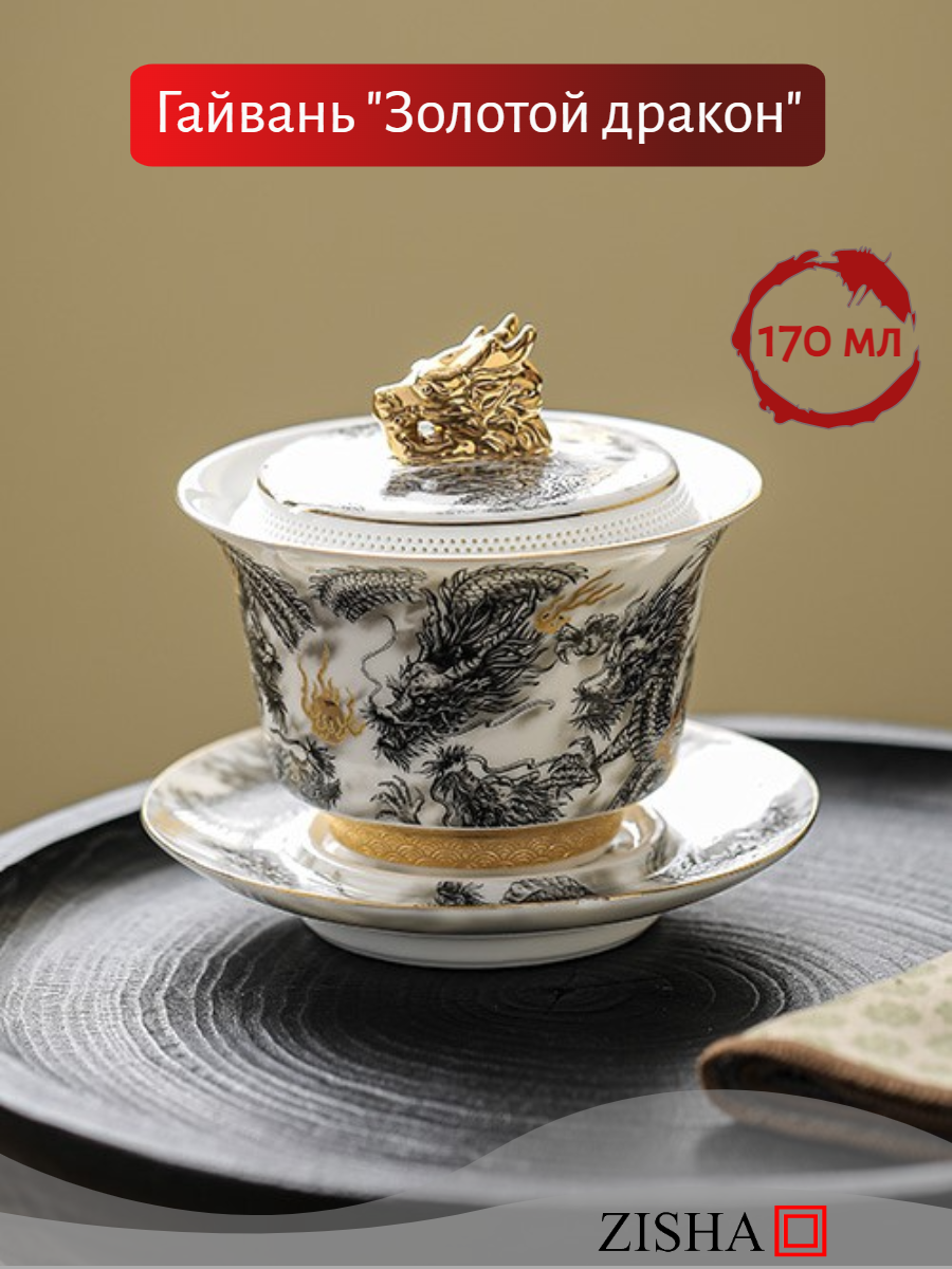 Гайвань для чая Zisha «Золотой Дракон», фарфор, с блюдцем и крышкой, Подарочная коробка,0,17 л: сравнение цен, характеристики, фото, актуальное наличие и цены.