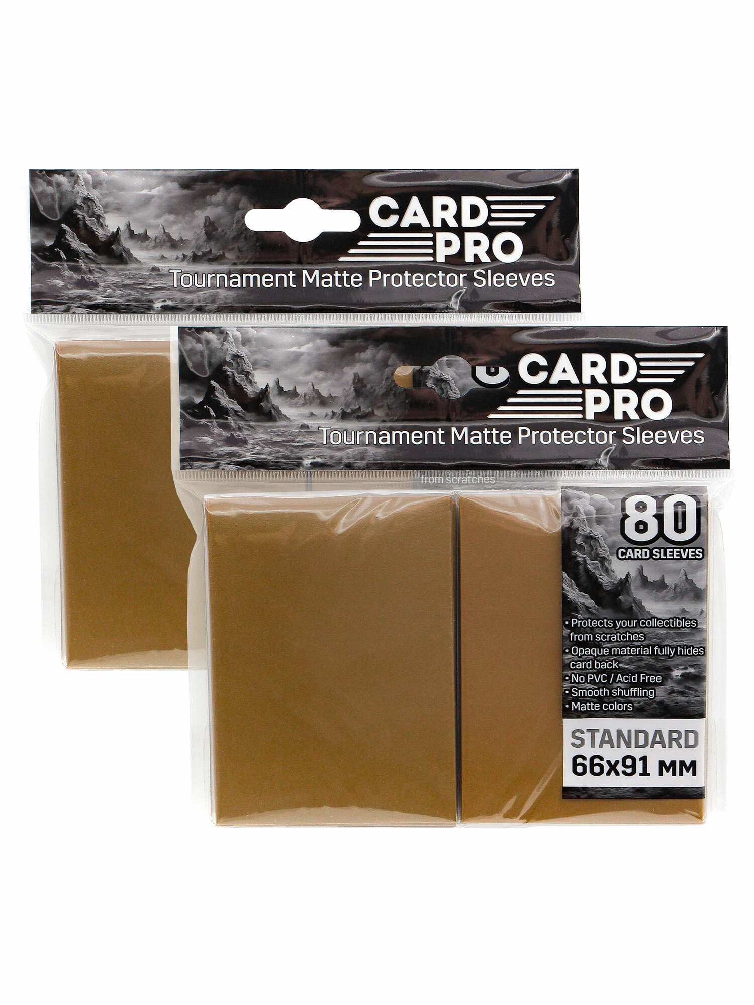 2 упаковки по 80 цветных протекторов Card-Pro размером 66х91мм. Протекторы подходят для большинства коллекционных карточных игр. Купив одну пачку протекторов, вы можете "нарядить" всю колоду, включая сайдборд, а также останется 5 шт. протекторов "про запас".