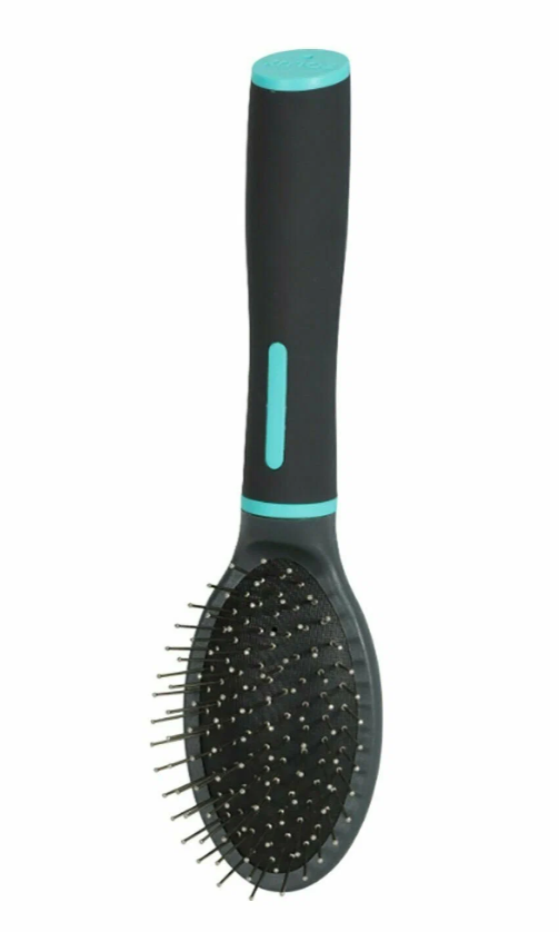 Массажная расческа с металлическими зубьями, снабженными защитными бусинами на концах. Предназначена для обработки шерсти, вычесывания, удаления грязи (например, после прогулки). Уход с ее помощью производит массажный эффект, предотвращает формирование спутанных участков шерсти, колтунов.