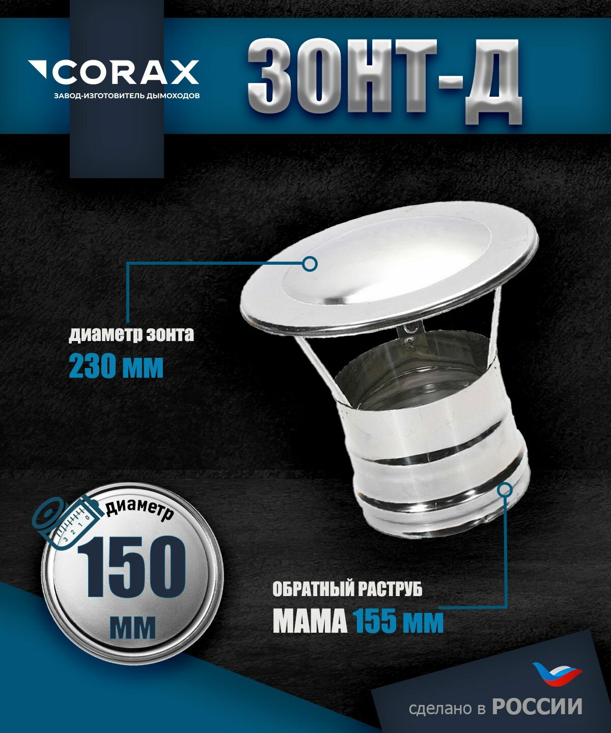 Купить Зонт-Д нержавеющий (430/0.5мм) Ф150 Corax с доставкой по всей России.