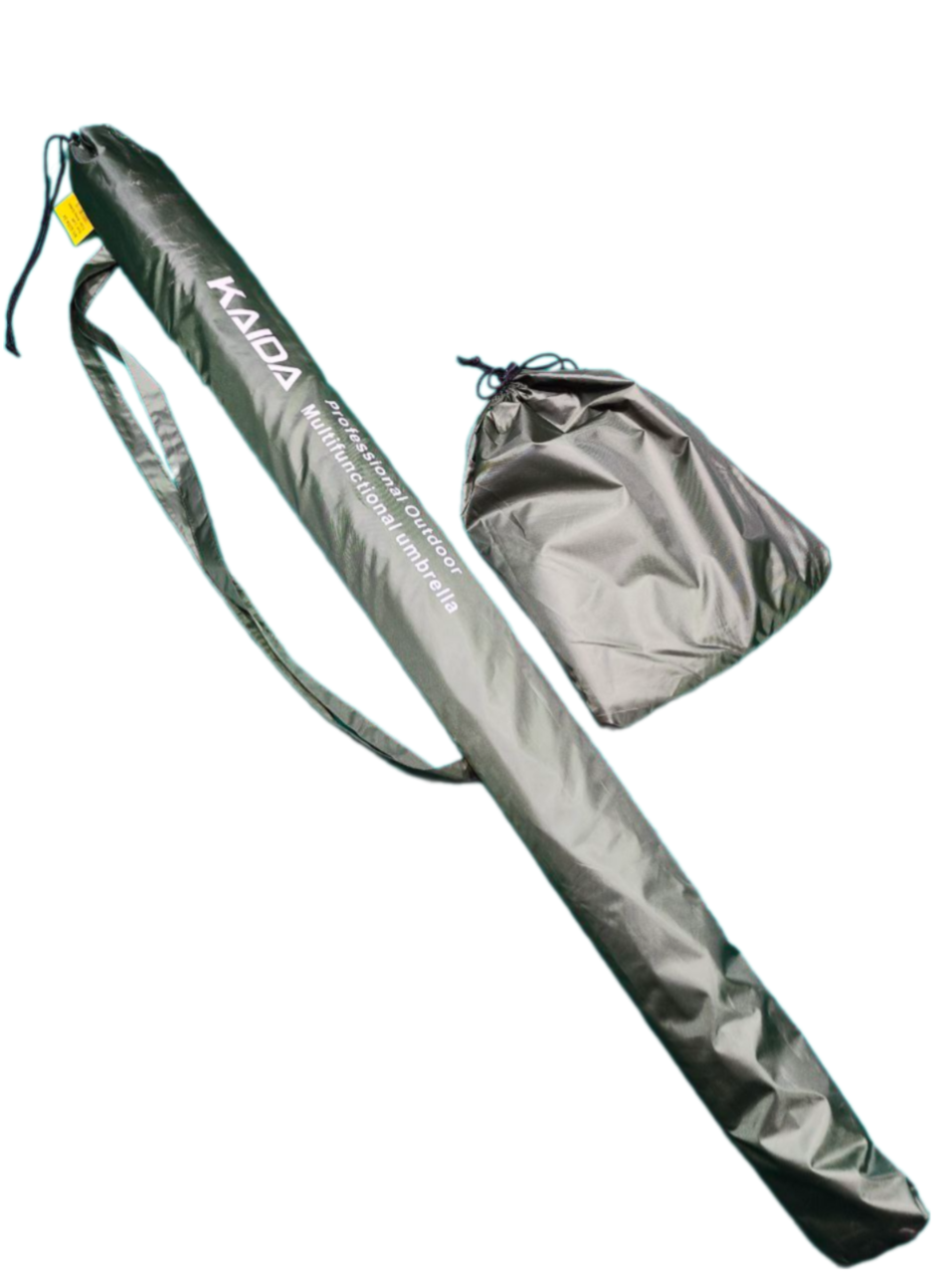Зонт для рыбалки, кемпинга или отдыха на даче водонепроницаемый с шторкой. Зонт KAIDA изготовлен из высококачественного водонепроницаемого материала, который обеспечивает надежную защиту от дождя и солнца. Зонт оснащен регулируемой конструкцией, которая позволяет настроить его под любым углом наклона, обеспечивая максимальный комфорт и защиту от солнца и ветра. Шторка на молнии, расположенная на 3/4 длины зонта, добавляет удобство и функциональность, позволяя регулировать ее и предотвращать попадание ветра или солнца. При желании ее можно отстегнуть. Под зонтом с комфортом разместятся 2 человека. Зонт имеет компактные размеры и легкий вес, что делает его удобным для переноски и использования. Поставляется в удобном чехле с двумя лямками для удобства переноски.