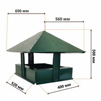 - Дымник металлический - это идеальный выбор для тех, кто хочет защитить свою дымовую трубу или нужен зонт на трубу вентиляции и дополнить оформление своего дома. Он изготовлен из оцинкованной стали с полимерным покрытием, что защищает от коррозии и выгорания. Толщина металла не менее 0,45 мм (без учёта покрытия), а посадочный размер составляет 520х400 мм.