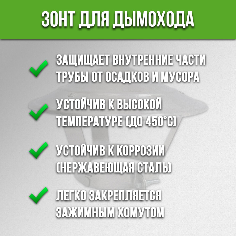 Купить Зонт на трубу дымохода 150 мм нержавеющий с хомутом с доставкой по всей России. Зонт на трубу дымохода 150 мм нержавеющий с хомутом: сравнение цен, характеристики, фото, актуальное наличие и цены.