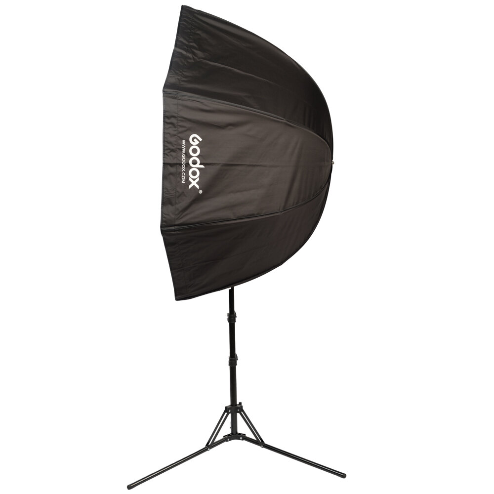 Зонт-октобокс Godox SB-UBW120 имеет диаметр опоясывающей окружности 120см. Подобно зонту, он мало весит, легко и быстро собирается для работы, компактен для транспортировки. При этом качества софтбокса: закрытая конструкция, наличие белого матового рассеивателя - помогают в создании равномерного мягкого освещения, лишенного световых потерь и нежелательных бликов. Перемещение источника света ближе к центру зонта или дальше от него позволит изменять качество освещения. Конструкция имеет "карман с молнией" для более удобного использования стойки. Такое разнообразие возможностей делают зонт-октобокс Godox желанным помощников во многих видах фотосъемки, в студийных или выездных фотосессиях.